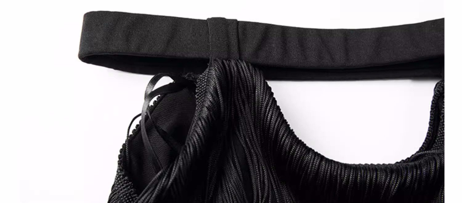 Εκρηκτική φούστα λάτιν με ιδιαίτερο κόψιμο στους γοφούς και πλούσια κρόσσια.