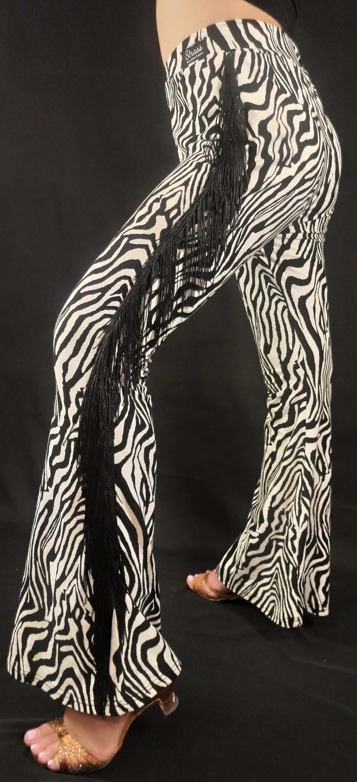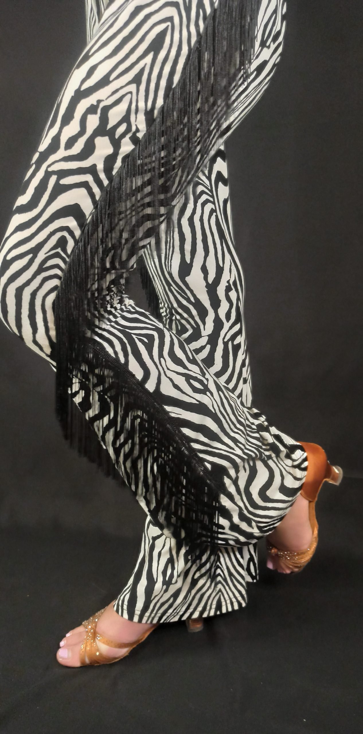 Παντελόνι Animal Print (Zebra) από εξαιρετικά ελαστικό ύφασμα. Διατίθεται και με πλαϊνά κρόσσια για ακόμη εντυπωσιακότερη εμφάνιση.
